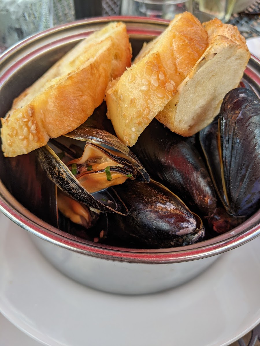 Mussels Steamed in Corona Beer with Andouille Sausage Corn Tomatoes Chipotle Peppers & Cilantro